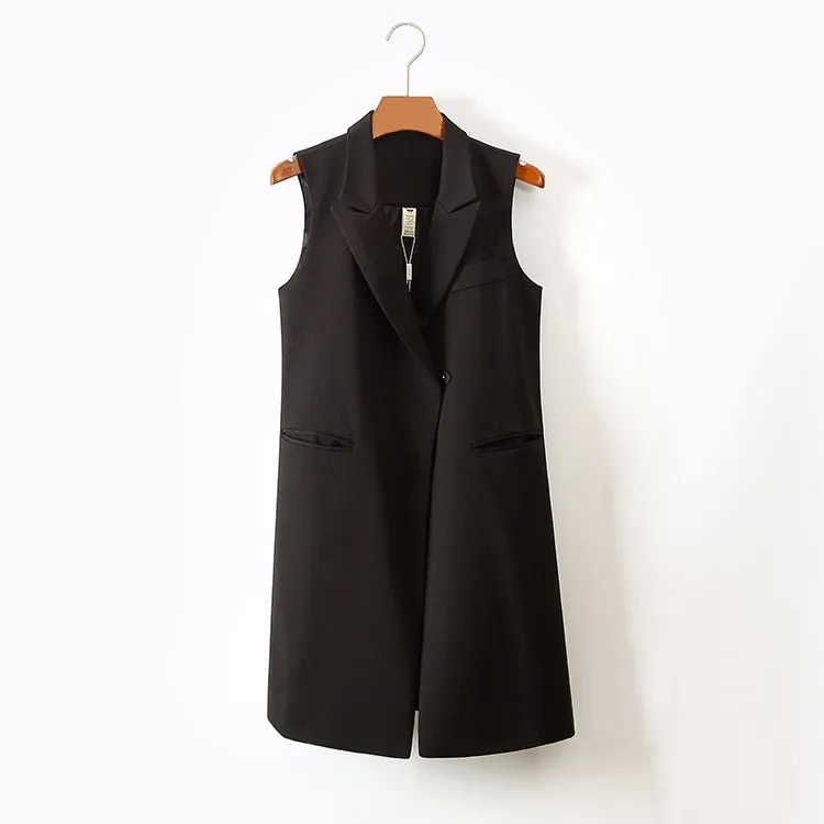 Женская черная жилетка длинная безрукавка
