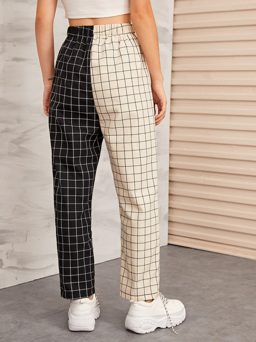 Такие брюки дарят удивительно романтическое настроение. На белом фоне хорошо выглядят контрастные принты – к примеру, черная или коричневая клетка. Если хочется создать более нежный и романтичный лук, лучше выбрать мятный или розовый рисунок. Чтобы создать более яркий ансамбль, выигрышным решением станет оранжевый или лаймовый узор.