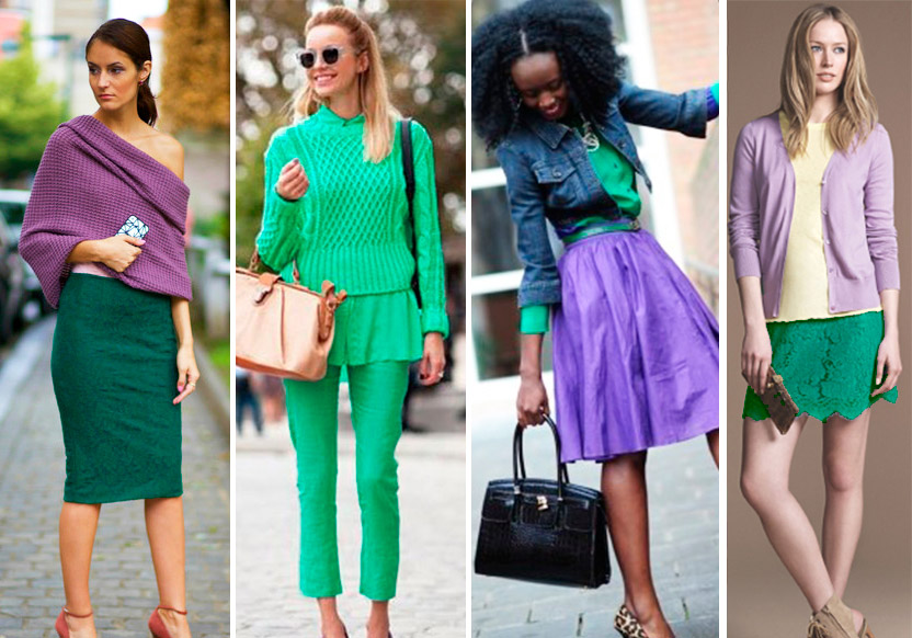 Сочетание этих оттенков сиреневого и зеленого очень толерантно к всевозможным ярким включениям – сюда можно спокойно добавлять желтый, оранжевый, голубой, белый цвета. Единственный цвет, с которым это сочетание не дружит, – красный.