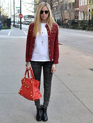 Гид по удачным лукам начать следует, безусловно, со ставшего уже классическим образа в стиле кантри. Рубашка с красными и бело-синими клетками в этом случае идеально сочетается с джинсами. Причем нет никакой разницы в том, какого кроя они будут, это могут быть как бойфренды, так и зауженные модели, и даже расклешенные.