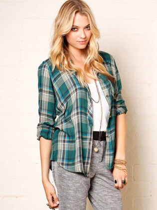 При правильном сочетании клетчатой рубашки с другими элементами одежды, она смотрится женственно, одновременно небрежно и изысканно.