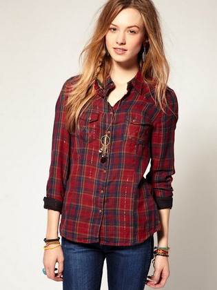 Если не желаете потерять свою неповторимую женственность, примените в сочетании с клетчатой рубашкой и джинсами деревянные бусы, выполненные в этническом стиле, шарф или же, если обходитесь без аксессуаров, выберите для себя рубашку, отделанную кружевом, с оборками или другими интересными элементами – и неотразимость вам гарантирована.