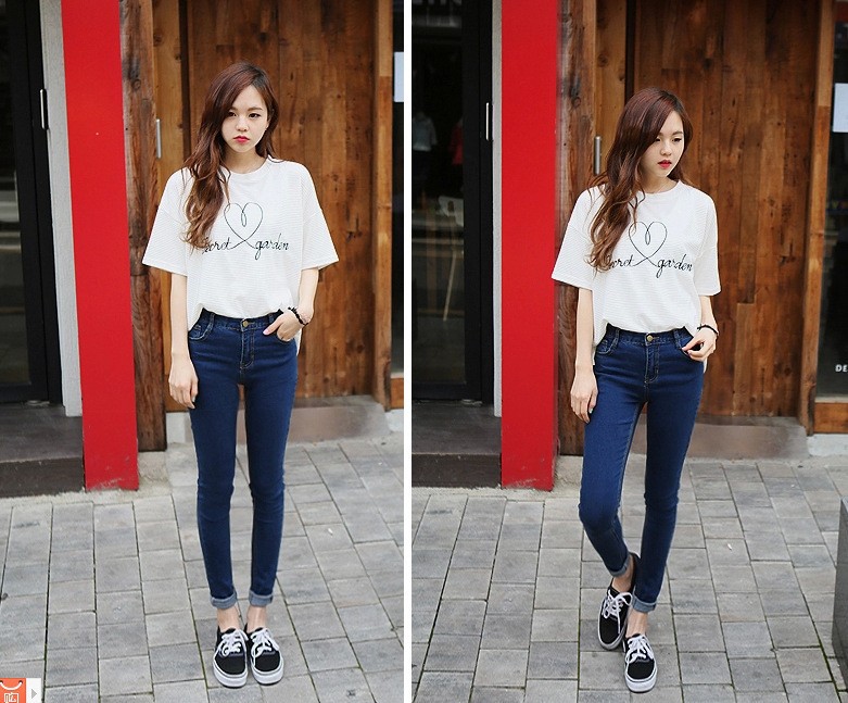Футболка должна быть достаточной длины. Чтоб она не вылезла из джинсов ее длина должна быть на 10-12 сантиметров ниже уровня пояса. Как заправить футболку и насколько удобно будет зависит и от типа фигуры. Если у девушки большая грудь, то проблематично добиться одной длины по всему объему. В таком случае лучше выбрать вариант со спуском на одну сторону или заправить спереди. Выручат и две небольших пуговки, пришитые с внутренней стороны джинсов. Если сделать на футболки отверстия, то можно надежно закрепить ее таким образом.