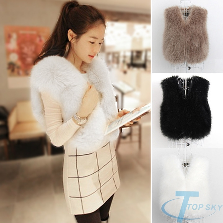 Marble Fox Fur Shrug жид0004 Knit Rabbit Fur Vest — Brown