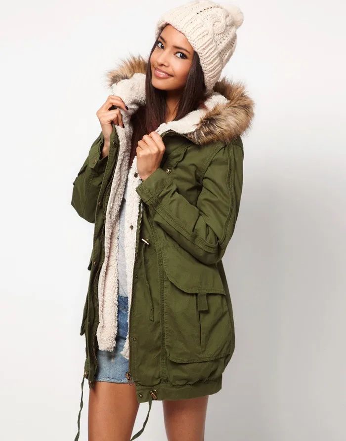 В заводской версии парки M-48 использовался плотный хлопчатобумажный сатиновый материал, устойчивый к ветру, и подкладка из меха и атласа.