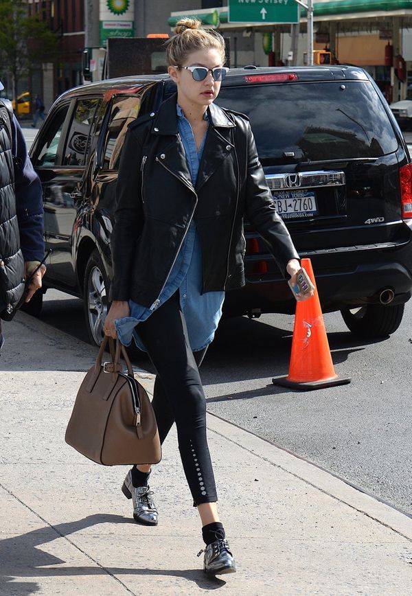 Пост знаменитости был бы неполным без символического образа в аэропорту или туристического ансамбля. Так что посмотрите, как Кейт Уинслет делает свое дело! Мы любим кожаную байкерскую куртку с чем угодно. Сделайте это «знаменитостью», надев все черное, надев куртку поверх свободной футболки или свитера, узкие джинсы и ботинки с ремешками. Наконец, наденьте толстый шарф и сумку на свой выбор, и вы готовы стильно отправиться на улицу (или в воздух).