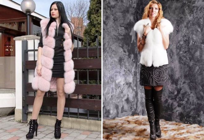 В современной моде меховые жилетки изготовляются из дорогих видов с длинным ворсом (песец, чернобурка и другие). В некоторых случаях спинка или бока могут быть выполнены из натуральной кожи, чтобы придать стройности.