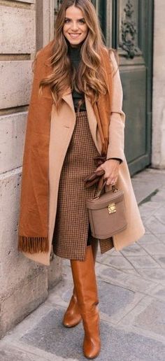 Очень стильные и изысканные тандемы получаются в комбинации с верблюжьим пальто и деловыми костюмами.