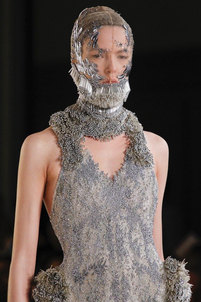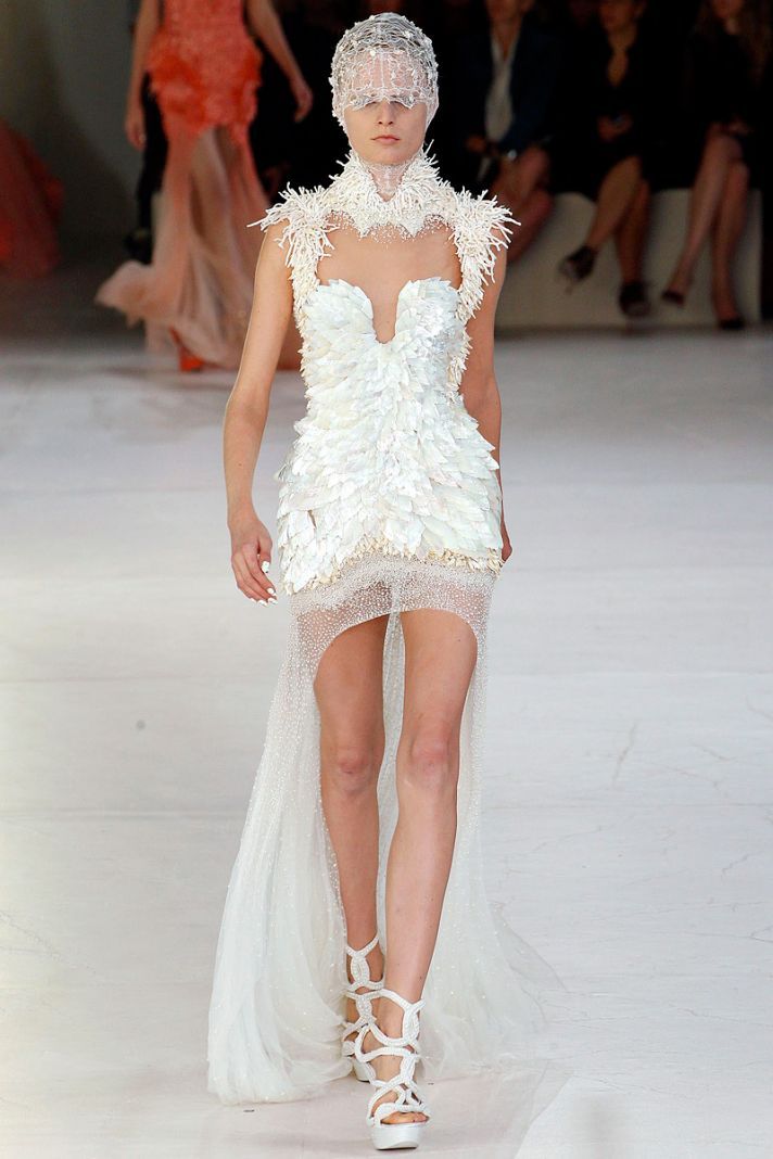 Потрясающий показ Alexander McQueen, раскрывающий и многогранность его источников вдохновения, и царящий в душе мрак. Заняв свои места, зрители оказались перед огромным зеркальным кубом и были вынуждены смотреть на свое отражение в течение часа, пока шоу намеренно задерживалось. Таким образом дизайнер хотел заставить модную индустрию посмотреть на себя повнимательнее и задуматься. А потом в кубе включился свет и появились модели с перебинтованными головами: вместо сексапильного прохода по подиуму они бились в стекла, заламывали руки и довольно правдоподобно изображали нервный срыв. В финале еще один куб в центре площадки раскрылся, с грохотом разбившись на мелкие осколки, оттуда вылетели сотни мотыльков, а в центре его оказалась обнаженная писательница Мишель Олей в маске и с дыхательной трубкой.