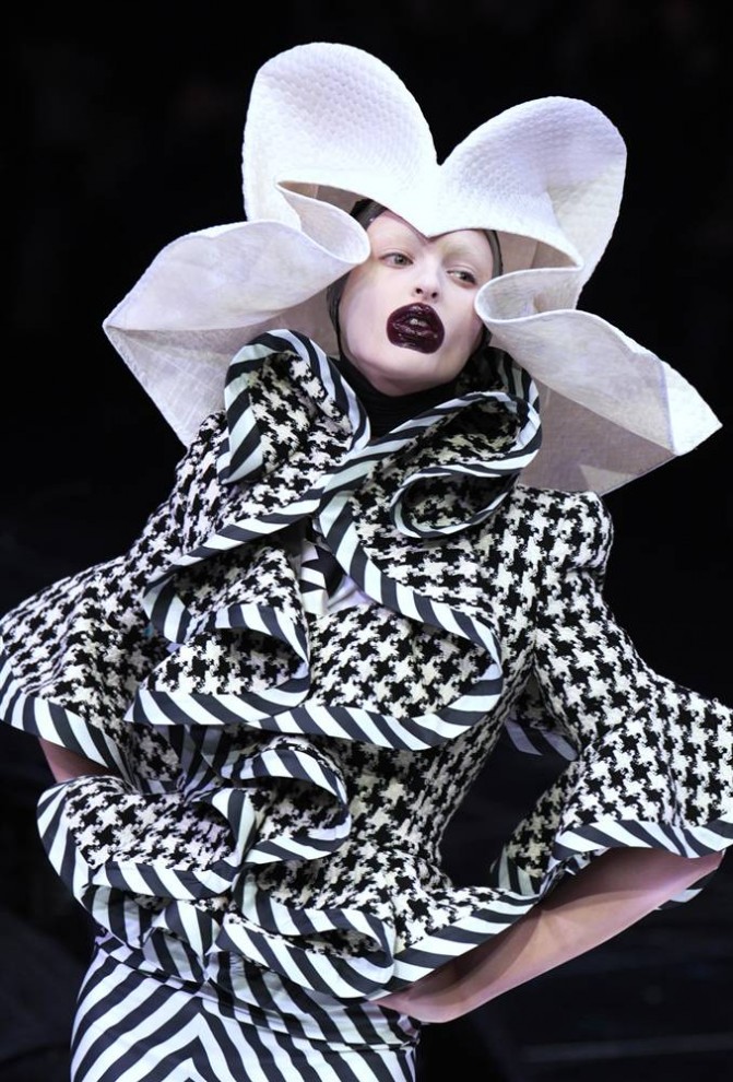 Бёртон обладает знаниями о Ли МакКуине и использует их легко и с чувством. Ломаный узор в виде меловой полосы может быть отсылкой к красной тонкой полоске, которую МакКуин использовал для шоу 1998 года под названием «Джоан», основанного на католической мученице. Круглый набор с кольцом видеороликов, вдохновленных исследованиями движения викторианского фотографа Эдверда Мейбриджа, определенно намекает на «Джоан», что было сделано в раунде. И Бертон играл ту же музыку из этого шоу, только наоборот. Также хочу отметить, что у компании был один из лучших актеров в этом сезоне. Помимо французской певицы и автора песен Изольда, у Бертона было около 15 мужчин и женщин, которые не были профессиональными моделями.