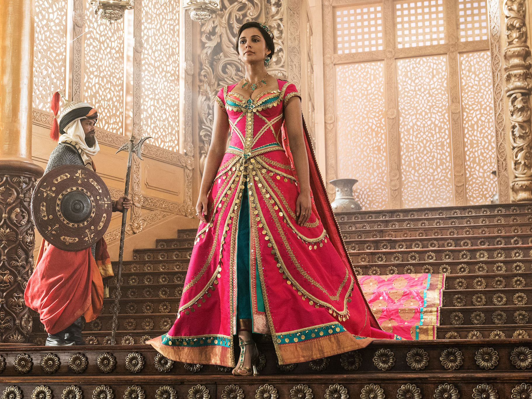 Disney продолжает переснимать классическую мультипликацию в виде игрового кино. Спустя несколько лет производства такого контента студия поняла, что покадровое воспроизведение старого мультфильма (как это было в «Красавице и чудовище») это всё же слишком. Поэтому в Аладдине и сюжет, и атмосфера не кардинально, но заметно изменены. Многие визуальные образы были переосмыслены, в том числе костюмы, например, самый известный наряд Жасмин — бирюзовые шаровары и топик. Но такие перемены разумны, ведь то, что естественно выглядит в рисованной анимации, может оказаться нелепым и неуместным в игровом кино с живыми актёрами.