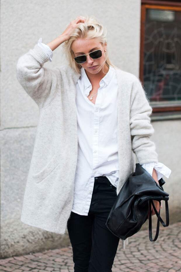 Это, пожалуй, самый простой наряд, который можно носить с белым кардиганом.