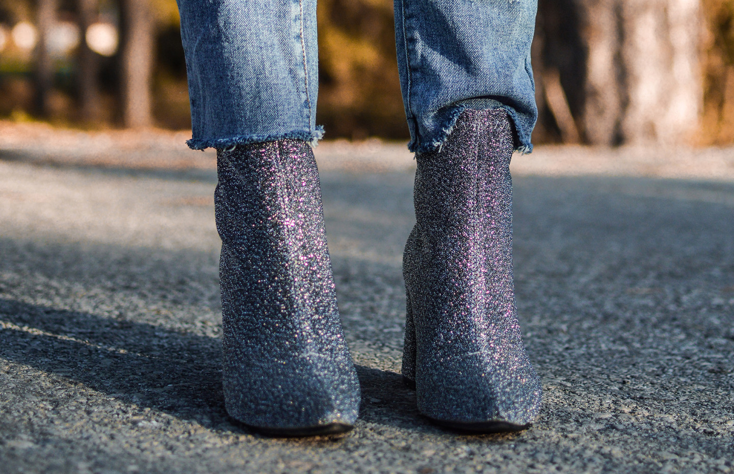 Джинсовые вещи с блестящей обувью