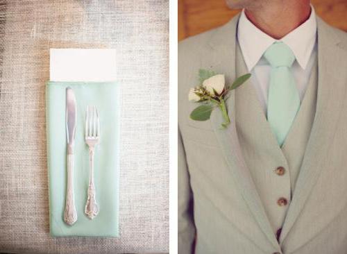 Серый цвет так же хорошо сочетается с оттенками мятного. Однако, при выборе его в качестве дополнения, не забывайте, чтобы серый был максимально светлым, иначе образ получится тяжелым и скучным.