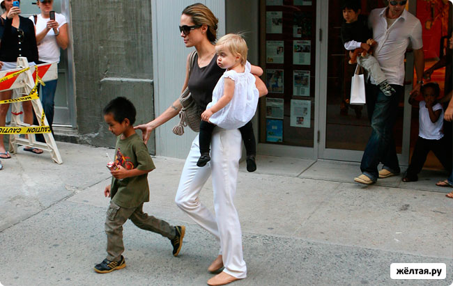 Спустя год Анджелина Джоли родила двойню: мальчика Нокса Леона и девочку Вивьен Маршелин.