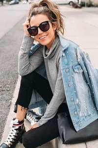 Сегодня даже вошло в привычку носить их с платьями и юбками. Одним словом, в образе, где присутствует джинсовая курточка, кроссовки всегда уместны.