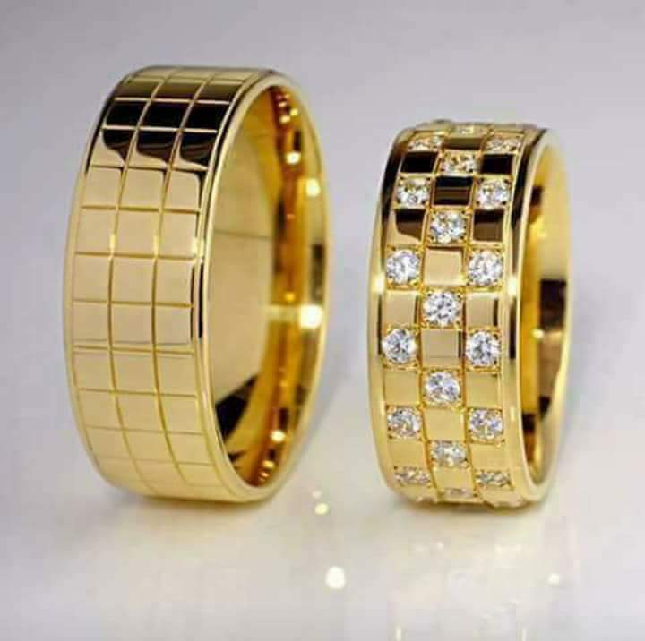 Кольцо невесты может быть усыпано мелкими осколочками бриллиантов, в то время, как кольцо жениха будет довольно строгим и лаконичным.