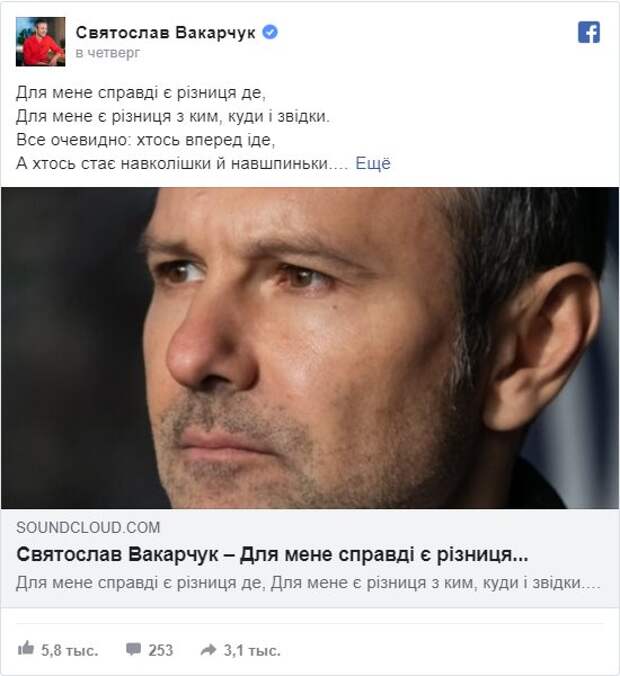 Святослав Вакарчук: Я даже не знаю, как вам сказать, где я был сейчас, потому что с того времени, когда мы начали договариваться об интервью, я дважды был на фронте.