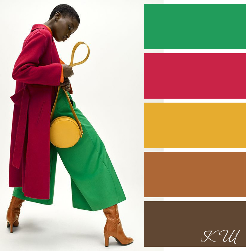 Если существует неуверенность, что составленный из этих цветов ансамбль будет смотреться чрезмерно вызывающе, можно воспользоваться одним проверенным приемом. Основной наряд сделать одного цвета, а другой использовать в аксессуарах.