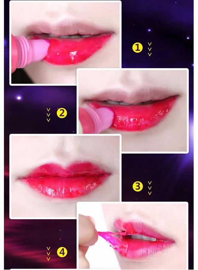 - Шаг 1, гелевая маска для губ, наполняет верхний слой губ сверхвысокой концентрацией красителей и пигментов, намного большей, чем в большинстве традиционных губных помад и красок для губ.
