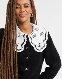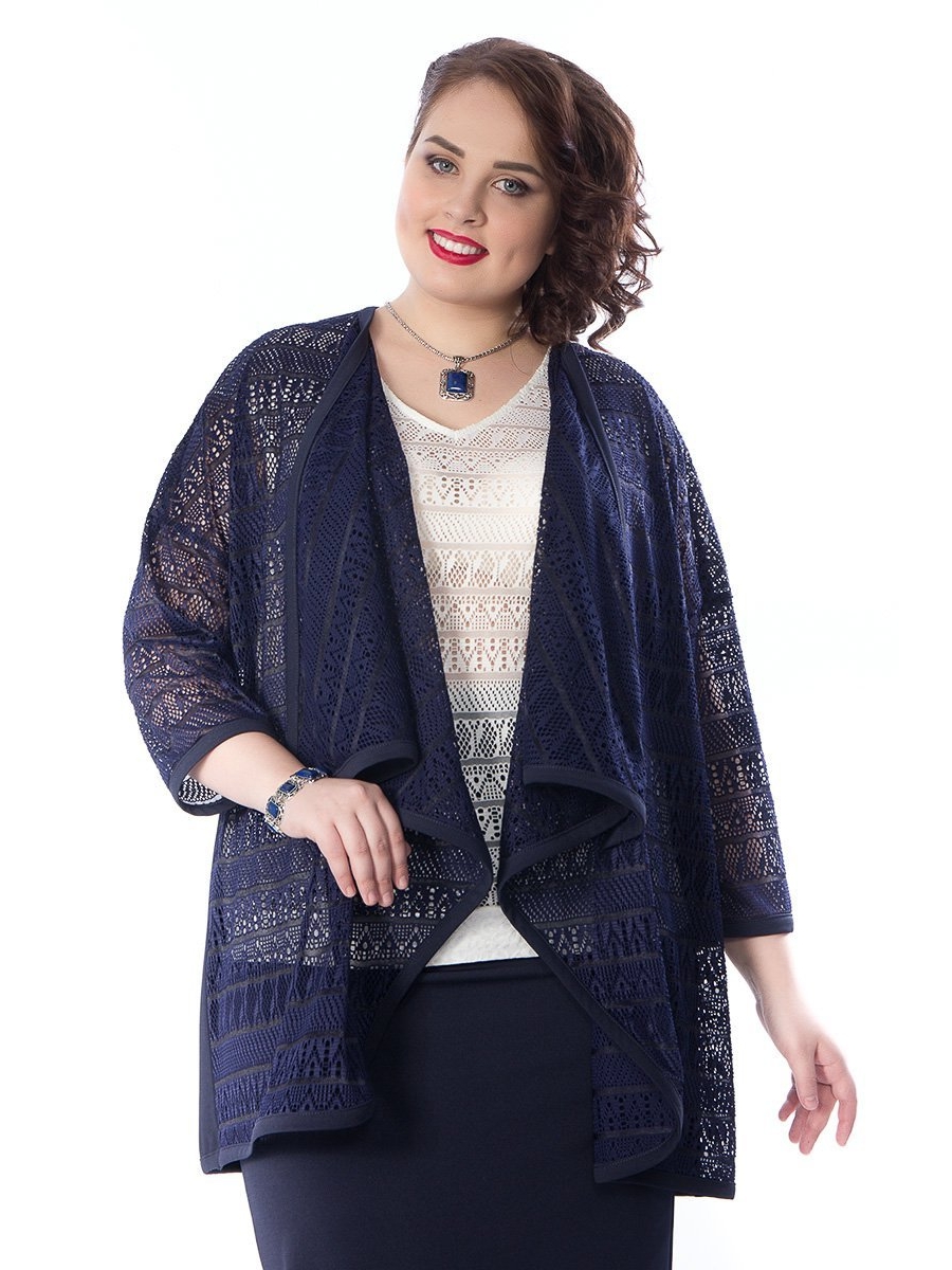 Использование моделей, которые в несколько раз больше нужного – отличительная черта современных коллекций этого вида одежды. Это связано с тем, что такой выверт моды скрывает некоторые несовершенства фигуры. Большой популярностью пользуются кардиганы с ажурными большими воротниками.