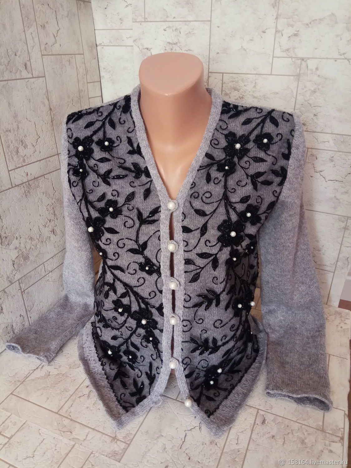 Украшение черного кардигана белым кружевом / KNITLY.com