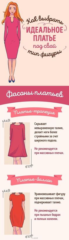 То есть для составления окончательного идеального образа не столько важен Ваш изначальный тип фигуры, как то, насколько верно Вы сумеете подобрать фасон платья своему по типу. Ниже мы дадим несколько рекомендация для подбора наряда в соответствии с данными телосложения.