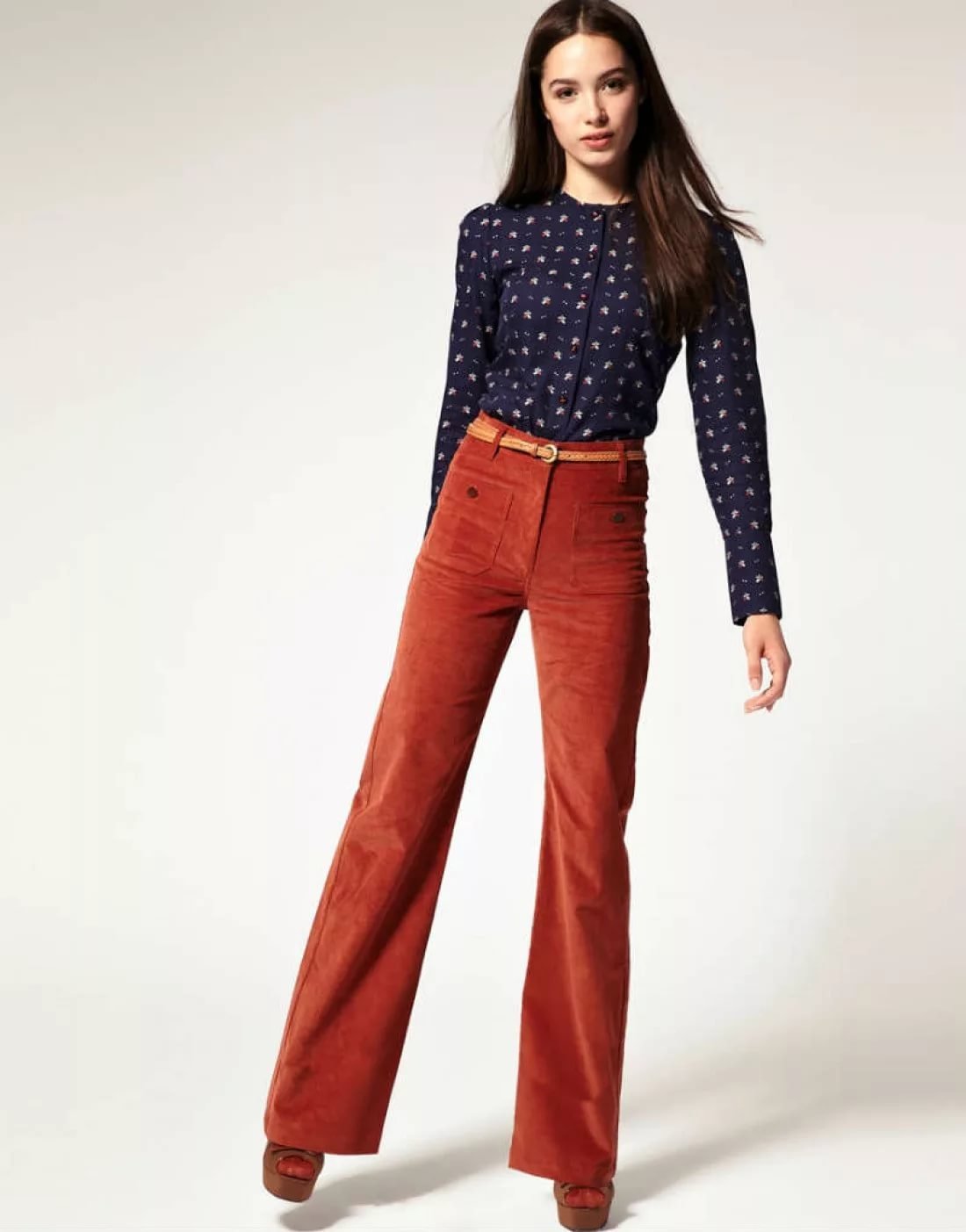 Ретро-клеш в стиле 70-х годов — этот крой отличается высокой талией и полностью расклешенными. Лучше всего для тех, кто слишком толстый и страдает от кекса, так как он будет держать под контролем дряблый живот. Высокая талия создает фигуру в виде песочных часов, поэтому она также подходит для мальчишеских форм.