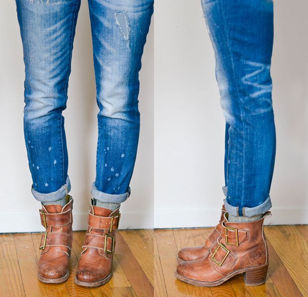 Сапоги-носки сейчас не в моде (если это важно для вас), но я думаю, что они — одни из лучших ботинок, которые можно носить почти со всеми типами джинсов. Поскольку они сидят как носок, они требуют много догадок, чтобы знать, какие джинсы с ними сочетать. Пока джинсы имеют более широкое отверстие для ног, чем сапоги-носки, все в порядке.