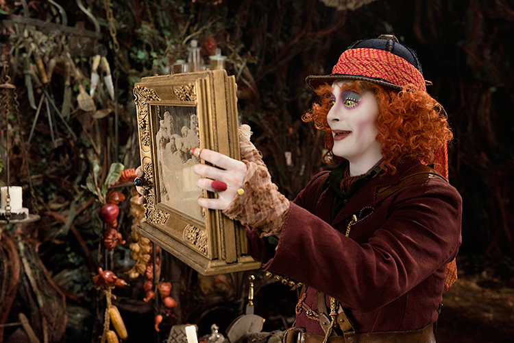 Тут Алиса снова попадает в Страну чудес, где все теперь счастливы под руководством Белой королевы (Энн Хэтэуэй) и только Шляпник (Джонни Депп) лежит с острой депрессией. Он нашел в траве свою первую шляпку, которая стала триггером неизжитой детской травмы: отец (Рис Иванс) не верил в него как в профессионала. Поскольку вся семья Шляпника была уничтожена Бармаглотом, с этим ничего не поделать, но он теперь вбил себе в голову, что они живы. Так или иначе, Алиса отправляется к Времени (Саша Барон Коэн) — которое, как выясняется, ухаживает за Красной королевой (Хелена Бонэм-Картер), — чтобы одолжить у него хроносферу, попасть в прошлое и разобраться в семейной истории Шляпника.
