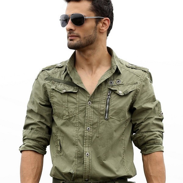 Рубашка в стиле милитариБрюки милитари могут быть классическими, прямого покроя с наглаженными стрелками или же более военные – карго или чипсы, которые заправляют в высокие ботинки. Неизменным аксессуаром любых брюк, будь то классика или карго, является широкий ремень с массивной бляхой.
