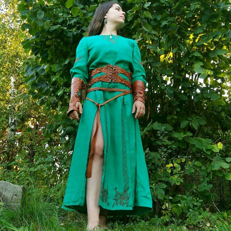 Для изготовления изделий в этно-стиле выбираются в основном экологичные ткани и материалы – лен, хлопок, шерсть, ситец, замша, кожа, реже вискоза или шелк.