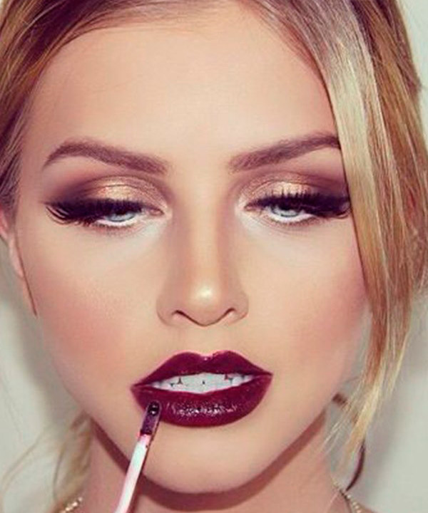 Темные помады, как и красные, требуют особого к себе отношения, а точнее, нанесения. Все должно быть идеально ровно и аккуратно. Иначе макияж будет смотреться грязно. Красить губы помадой винного оттенка в спешке не стоит. Выдели себе хотя бы пять минут, чтобы все прошло гладко. Если ты неуверенный пользователь помад в стике, то воспользуйся кистью для макияжа губ. А перед этим можешь обвести контур губ, за который ни на шаг нельзя выходить.