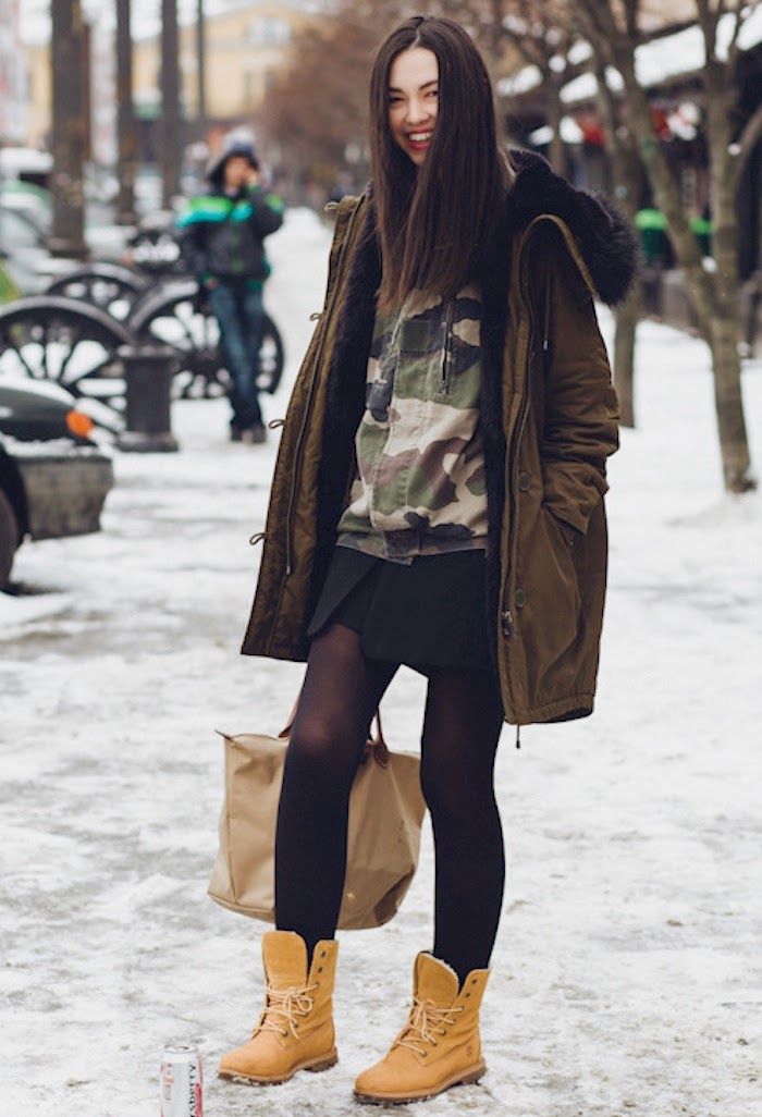 Вариантов, с чем носить бежевую парку, существует невероятно много.