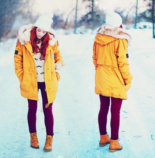 Желтая парка – с чем носить?