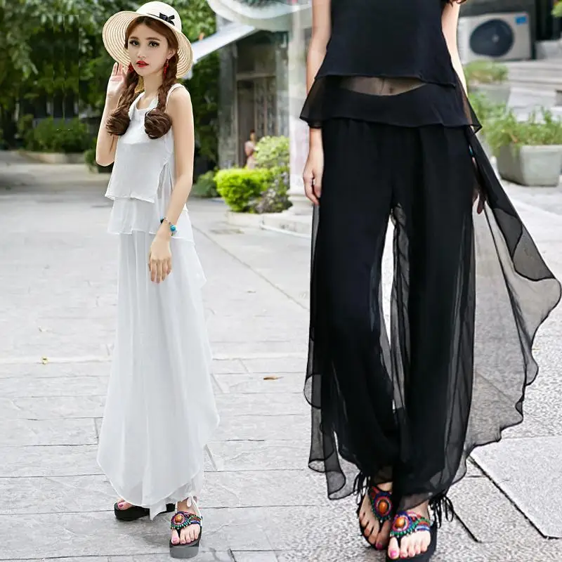 Широкие черные брюки и макси-юбка из прозрачного тюля