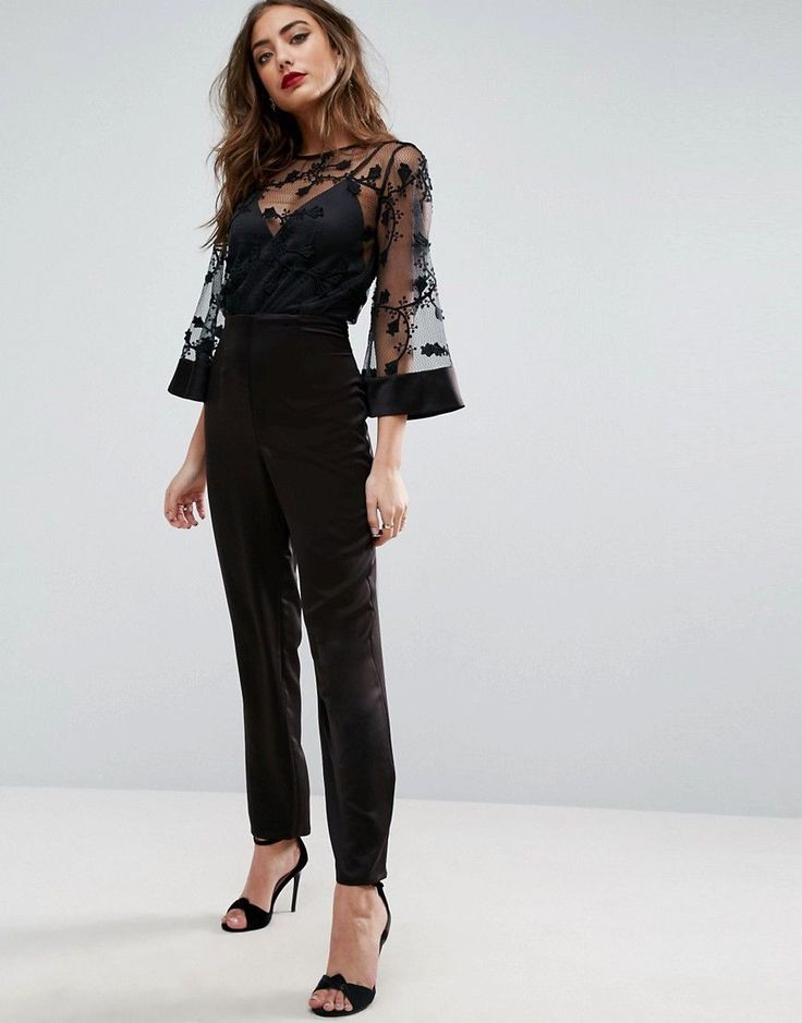 — Вполне. Удлиненные вариации фраков и кимоно, выполненные из плотного шелка или гофре, будут смотреться торжественно в сочетании с брюками-палаццо. Дополните такой наряд изящной обувью на шпильке.