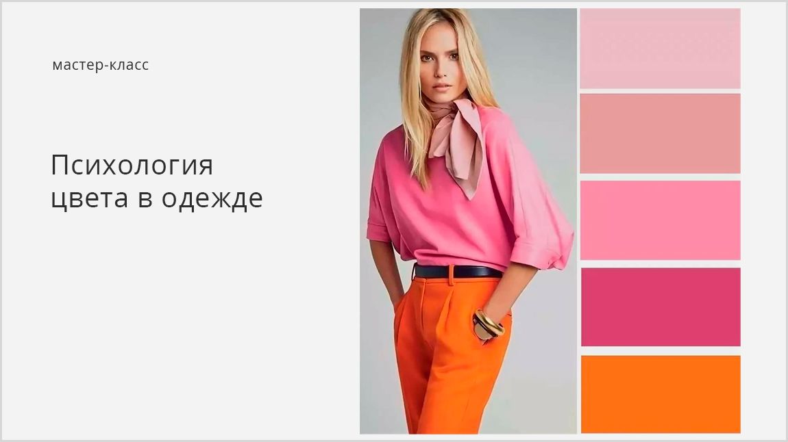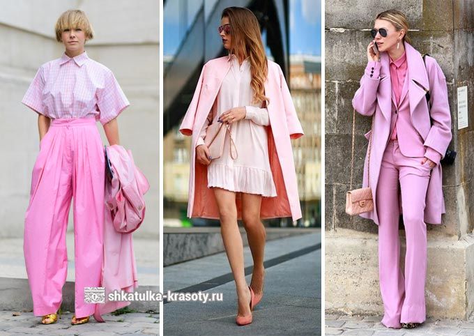 Цвет одежды очень многое говорит о его носителе. Девушка и женщина любого возраста может одеть розовую одежду, если правильно подберет оттенок. Одно из главных правил — теплые пастельные подходят для золотистой, персиковой кожи, а яркие тона для бледной и прозрачной. Если вы сомневаетесь в том, будет ли смотреться образ гармонично, приобретите несколько аксессуаров: например, вместо платья, можно создать образ, в котором основной цвет будет другим, а розовой может быть сумочка, пояс, браслет или туфли.