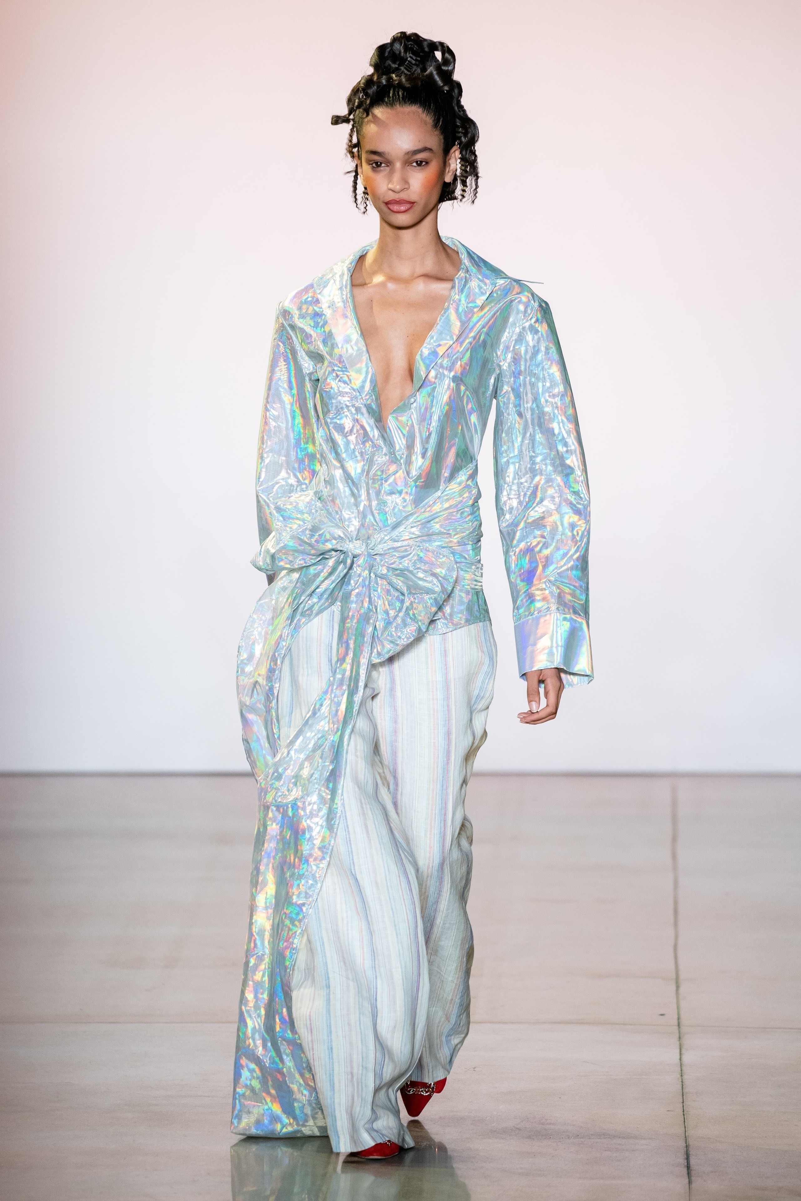 Открытием недели (или даже сезона) стал показ Christopher John Rogers. Юный дизайнер из Бруклина представил коллекцию, по его словам, «в стиле прагматичная экстравагантность»: голографические ткани, оптические принты, сложные вырезы и оборки. Имя Кристофера Джона стоит запомнить, ведь к своим 25 он уже успел стать финалистом престижного конкурса CFDA, создать платье для Мишель Обамы и костюмы для поп-исполнительниц SZA и Lizzo.