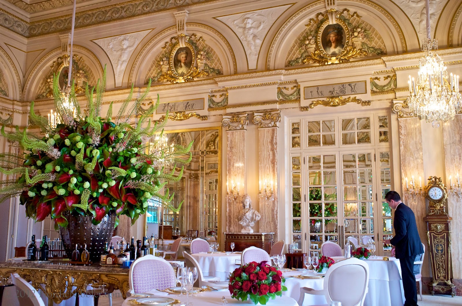Здесь правят бал элементы классицизма и барокко и массивная мебель из благородных пород дерева. Ресторан принадлежит Алену Дюкассу, а его кухней заведует шеф-повар Франк Черутти. За первые четыре года работы ресторан удостоился самой высшей награды путеводителя Мишлен — трех звезд.