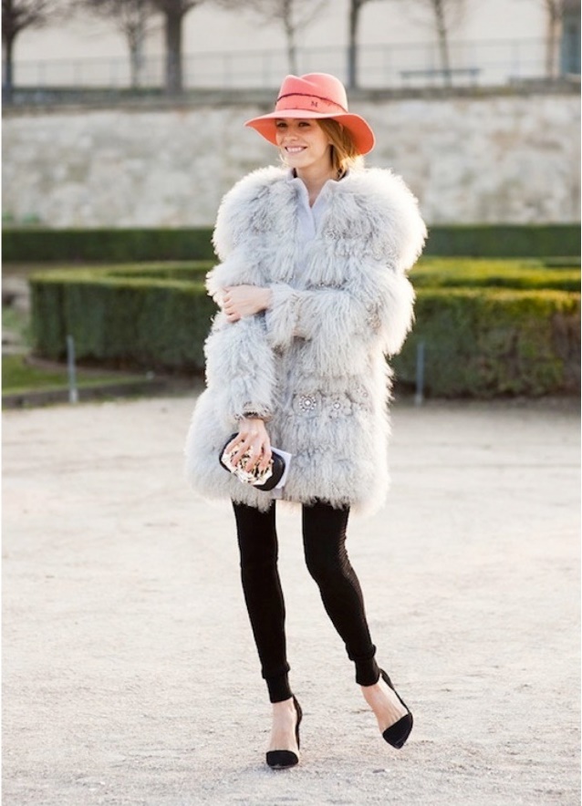 Лучше всего смотрится розовая шуба в том случае, если является центральным предметом всего образа. Поэтому в качестве комплекта к ней лучше подбирать простые по покрою вещи в базовой цветовой гамме. Особенно нежно и красиво выглядит розовая шуба с вещами серого цвета. Если же вы хотите сделать образ еще более запоминающимся, то выберите вещи с не слишком яркими цветами, но узорами в полоску или клетку. В качестве аксессуаров подойдут сумки и обувь с отделкой под крокодилью или змеиную кожу. Дополнить наряд можно также шляпкой или металлическими украшениями.