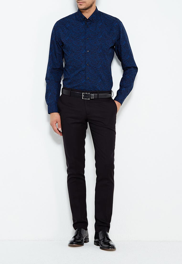 Лучше всего отказаться от рубашек ярких, насыщенных цветов: акцент в образе должен быть на чем-то одном. Также подойдут сорочки черного цвета, но для такого образа обязательно подбирать подходящие аксессуары: ремень и туфли.