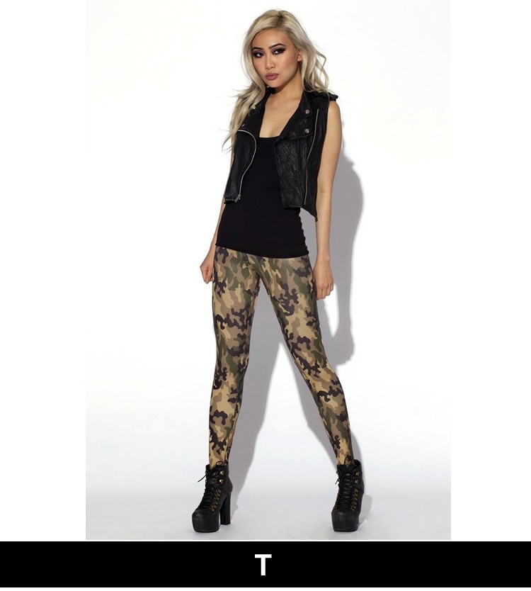 Элегантные повседневные ансамбли помогут составить изделия с имитацией карманов и пуговиц сдержанных тонов: темно – серые, кофейные, изумрудные или болотные. Стиль милитари приветствует легинсы зеленого или темно – коричневого цвета с точечным или цифровым камуфляжем.