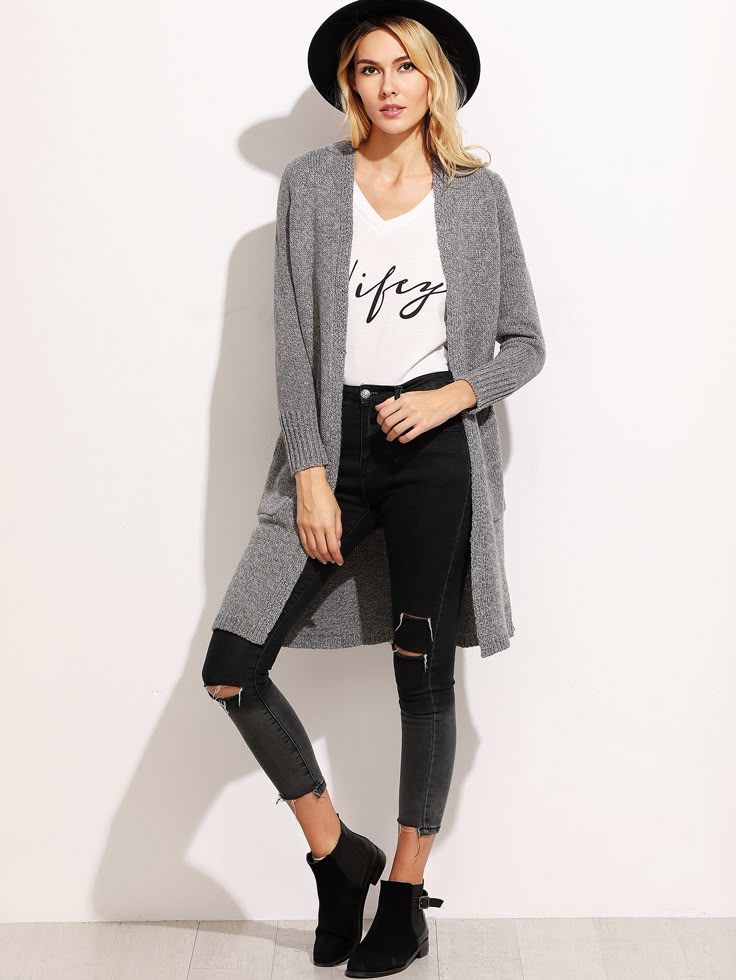 Серый кардиган – удобная вещь, которая подходит практически к любому стилю одежды. Его носят все женщины, так как знают, что любой лук совместно с серым кардиганом будет эффектным и модным.