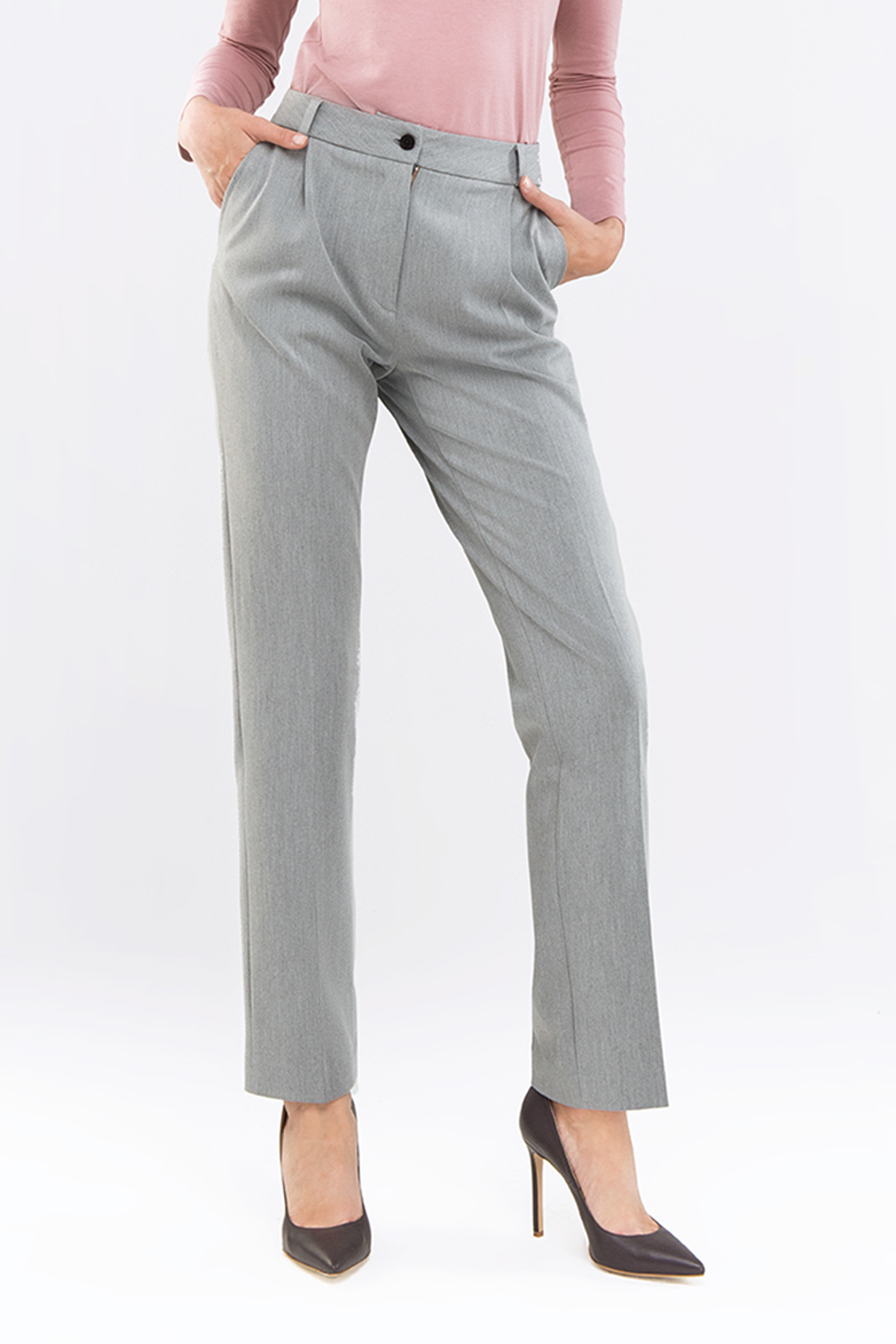 Эта вещь остаётся базовым элементом для большого количества модных образов. При составлении деловых или нарядных луков обратите внимание на брюки серого цвета. Данный цвет всегда в тренде, отличается широкой палитрой оттенков, сочетается и со спокойной, и с яркой одеждой.