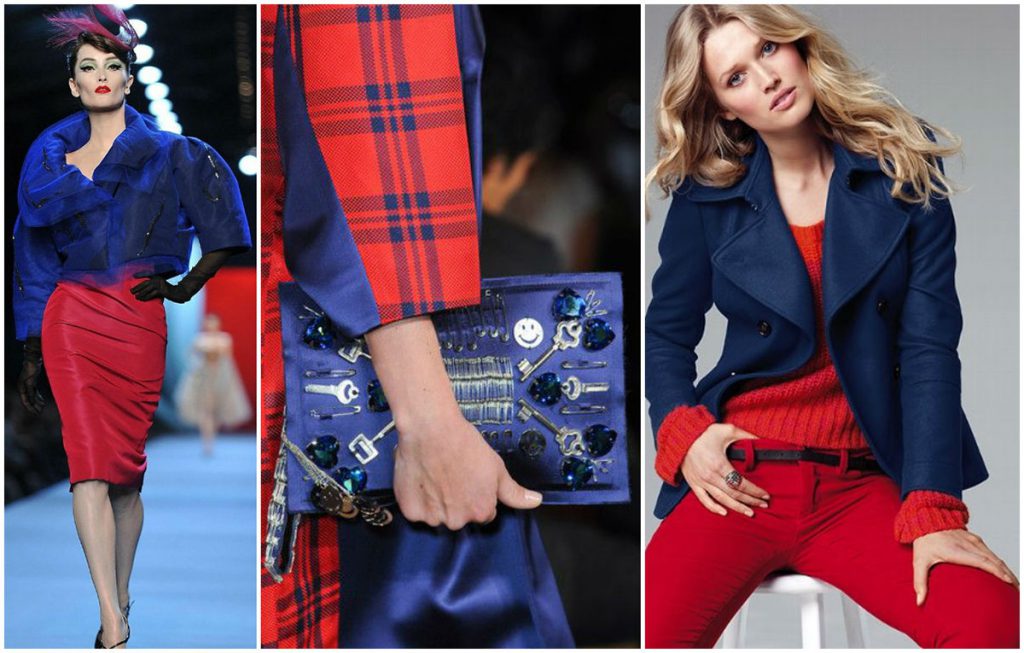 - синий – оттеняет и уравновешивает алый, делая его не настолько броским. В тандеме два этих оттенка создают интересный контраст;