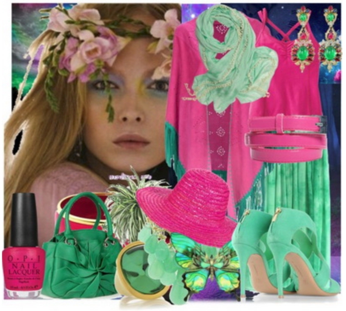Фото: polyvore.com Как и все яркое и эффектное, фуксия частенько попадает в список праздничных и вечерних вариантов, но на самом деле все зависит от правильной дозировки. Вы можете как создать полностью выстроенный на фуксии вечерний комплект, так и аккуратно добавить нотку фуксии в свой повседневный образ.