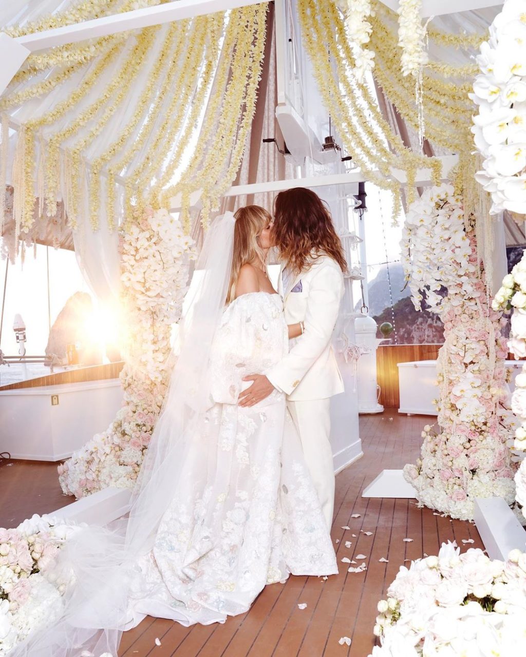 Супермодель Хайди Клум и гитарист Tokio Hotel Том Каулитц поженились в 2019 на борту роскошной яхты в Италии.