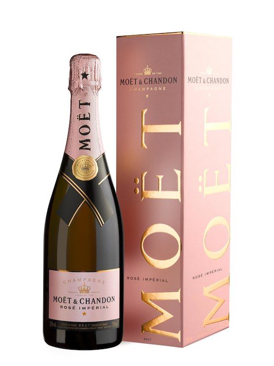 - Moet Chandon Brut Imperial Rose. Обладает элегантным розовым окрасом и великолепным колоритом красных ягод в аромате. Вкусовые характеристики основываются на элегантных долях винограда пино.