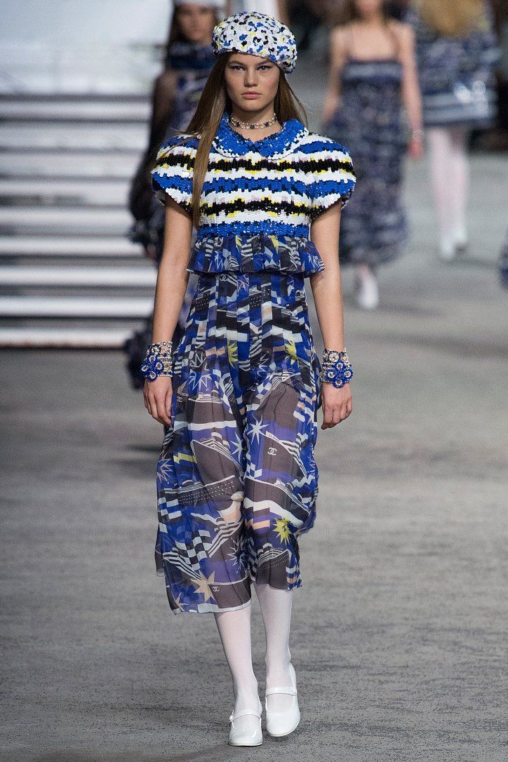 На этом отсылки к основательнице модного дома не заканчиваются: переосмысление классических твидовых костюмов, скромные туфли с ремешком, традиционные белые цветы в качестве аксессуаров, истинно французские береты и шляпки канотье — все это вкупе с узнаваемыми элементами морского стиля создает гармоничные образы для отдыха с ретро-оттенком. Однако благодаря мастерскому маневрированию между классикой и современностью Карлу Лагерфельду удалось создать гармоничные образы, которые легко представить не только на подиуме, но и в жизни.